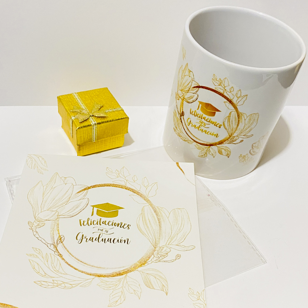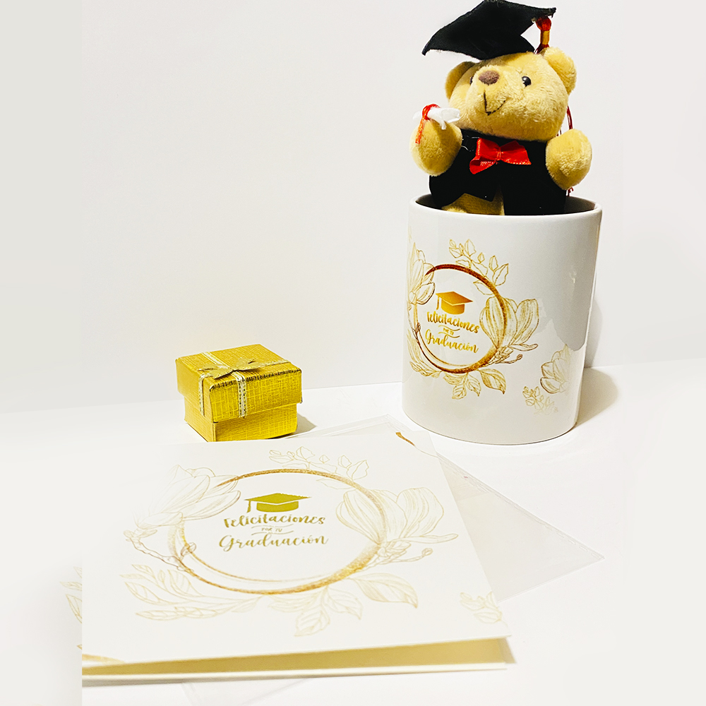 3. Cajita + Tazón graduación + Pin metálico + Tarjeta para dedicatoria.